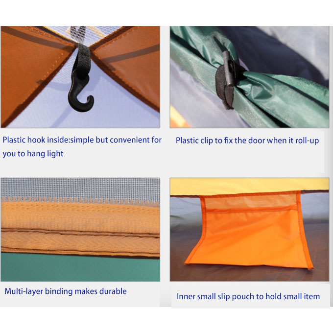 Dette bærbare campingtelt poppes automatisk op såvel som foldet og pakket bekvemt på et minut, tag bare det lette strandtelt ud og smid det over luften, det kan åbnes hurtigt uden brug af værktøj til at sætte op