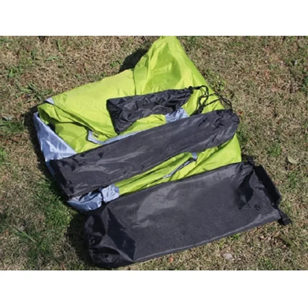 Kan også bruge støttestængerne, aluminiumspløkker og reb til at blive brugt som solsejl eller regnslag.